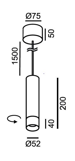 Rozměry | d=52mm, h=200mm, vč závěs kabelu l=1500mm, lze zkr. Uváděné rozměry jsou pouze informativní a výrobce je může změnit. |
