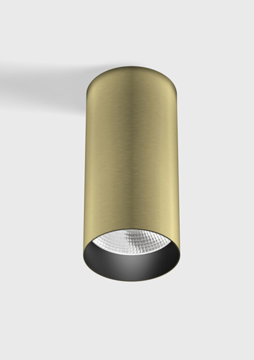 - Stropní přisazené bodové svítidlo, těleso hliník, povrch mosaz, LED 9W, 540lm, teplá 3000K, vyzař. úhel 35°, Ra90, 230V, IP20, rozměry d=52mm, h=110mm.