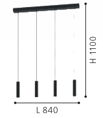 Závěsné svítidlo, těleso kov, povrch černá, LED 4x5W, teplá 3000K, 1920lm, Ra80, 230V, IP20, tř.2. rozměry š=840mm, vč. záv. kabelu l=1100mm, lze zkrátit