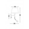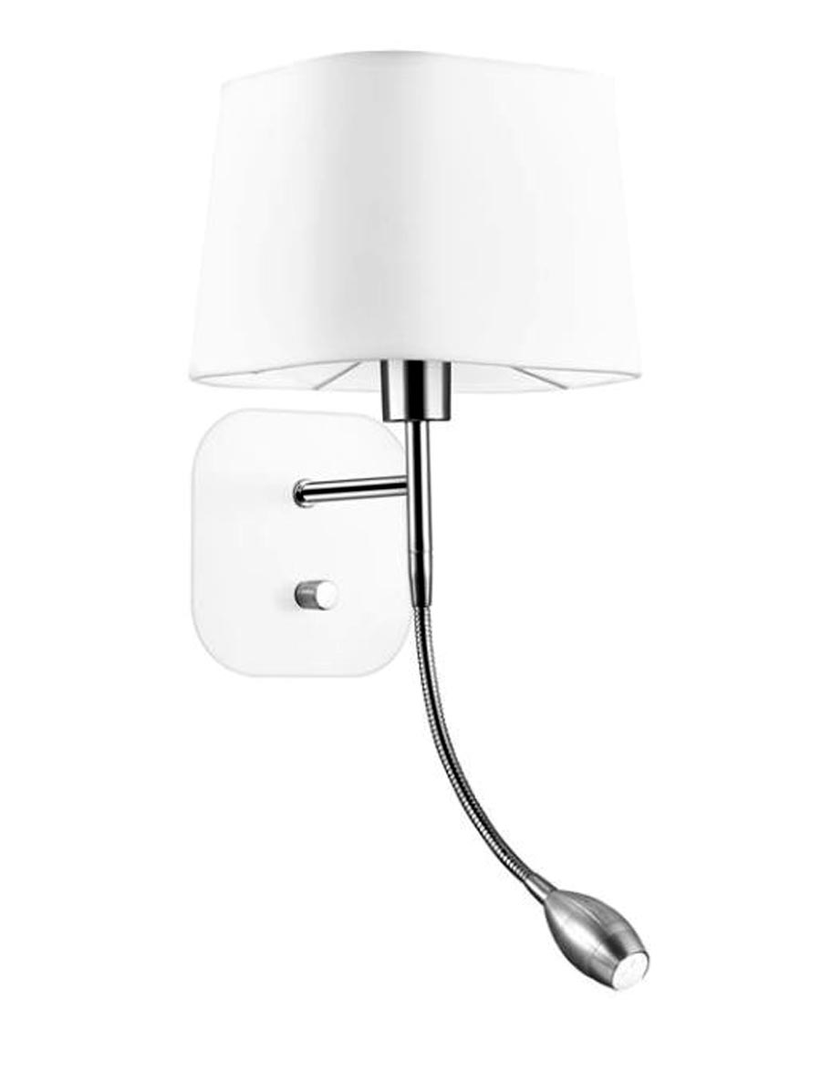 AMAN WALL 1x40W E27 LED 3W 3000K 230V IP20 - Nástěnné svítidlo, nastavitelný směr svícení, základna kov, povrch chrom lesk, stínítko textil bílá, pro žárovku 1x40W, E27, LED 3W, teplá 3000K, 230V, IP20, rozměry 180x230x440mm