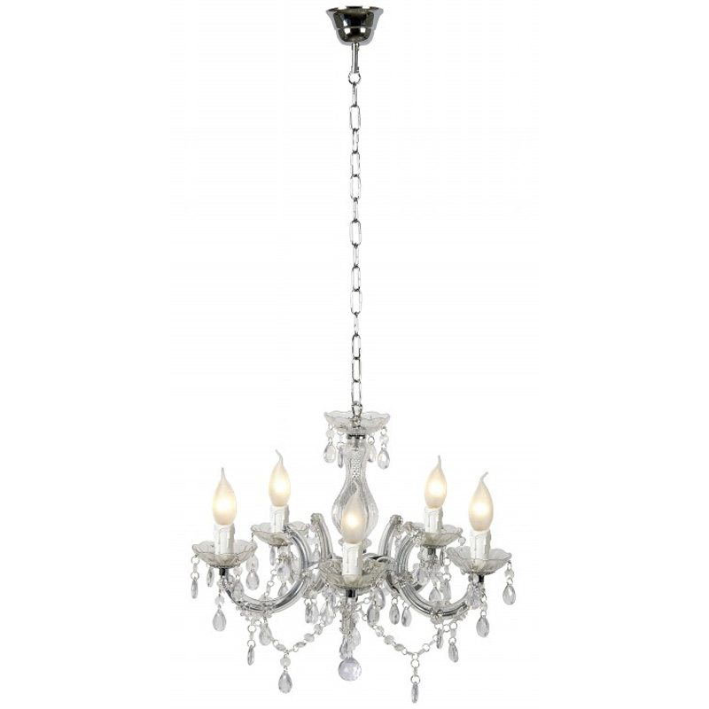 Závěsné svítidlo lustr 5 ramen, základna kov, těleso akryl, pro žárovku 5x40W, E14, 230V, IP20, tř.1. rozměry 460x460x1020mm, včetně závěsu, lze zkrátit