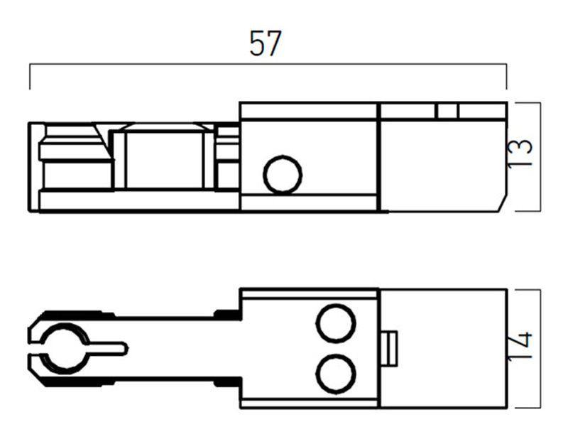 POTENZA NK 12V, nebo 24V - Napájecí koncovka napájecí lišty do vitríny, materiál plast, povrch černá, 12V, nebo 24V, IP20, tř.3, rozměry 57x14x13mm