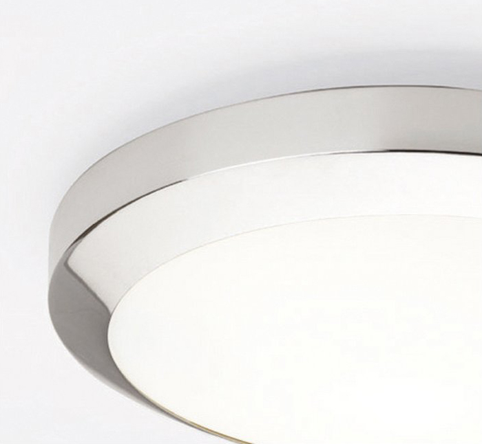 AWIT do koupelny 60W E27 IP44 - Stropní svítidlo, základna kov, povrch chrom lesk, difuzor sklo opál, pro žárovku 60W, E27, 230V, do koupelny IP44, tř.2, rozměry d=300mm, h=87mm