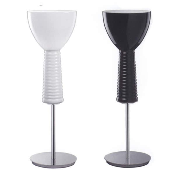 Stolní lampa, základna kov, povrch chrom, stínítko černé, nebo bílé sklo, 1x100W, E27, 230V, IP20, d=190mm, h=620mm, se stmívačem