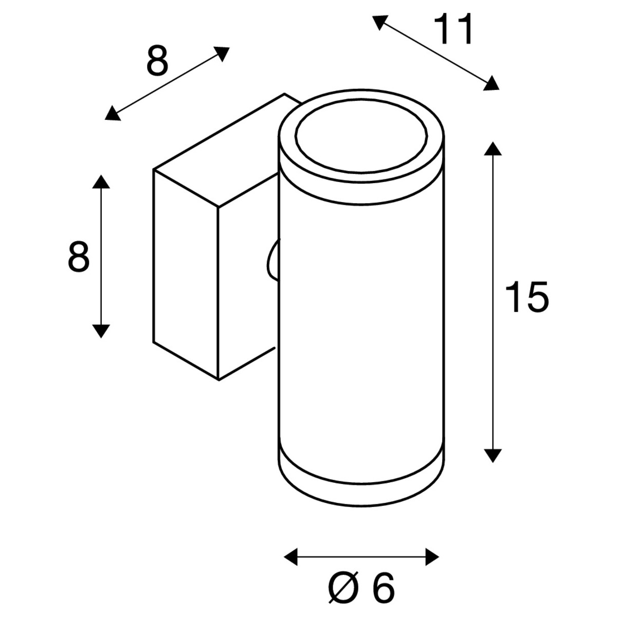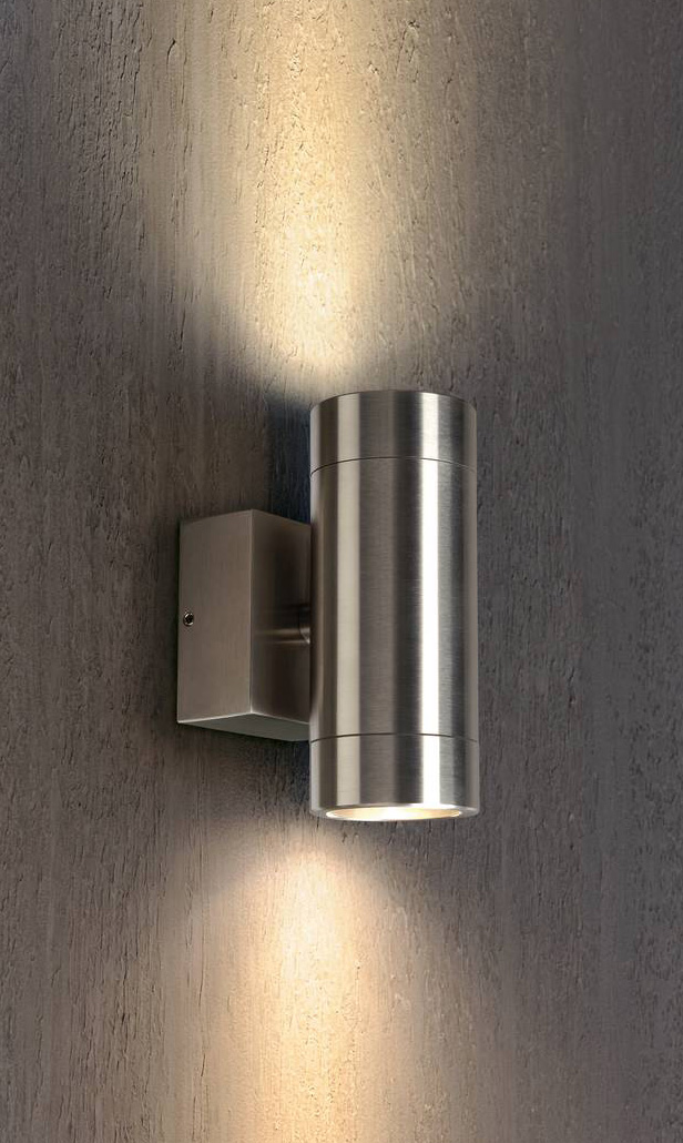 LINARES GU10 - Nástěnné venkovní svítidlo, těleso nerez, pro žárovku 2x35W, GU10, IP44, rozměry d=60mm, h=150mm, svítí nahoru/dolů.