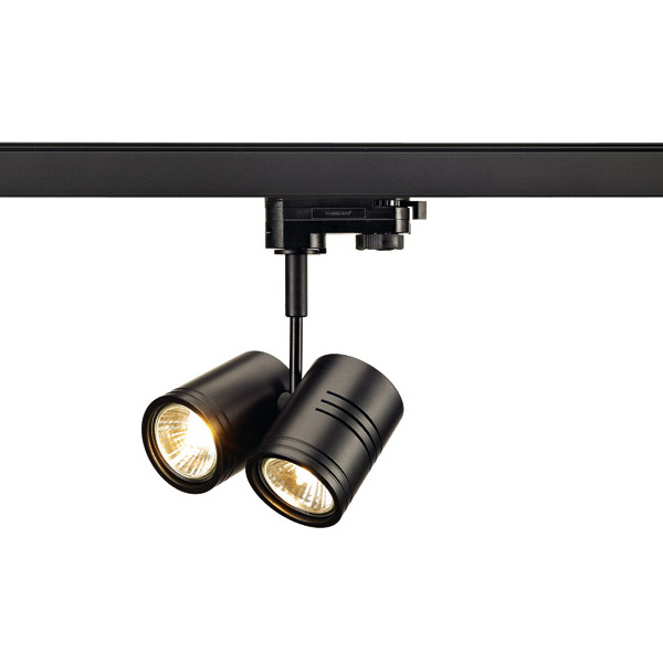 Bodové svítidlo nastavitelný směr svícení, těleso hliník, povrch černá, bílá, šedostříbrná, pro žárovku 2x50W, GU10 ES50, 230V, 78x130x255mm, pro instalaci na 3f napájecí lištu NORDIC ALUMINIUM, nebo EUTRAC