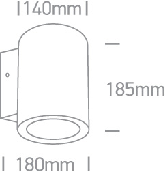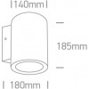Nástěnné venkovní svítidlo, těleso hliník, povrch černá antracit, LED 20W, 1400lm, teplá 3000K/neutrální 4000K, stmívání TRIAC, Ra80, 230V, IP65, tř.1, rozměry d=140mm, h=185mm, svítí dolů.