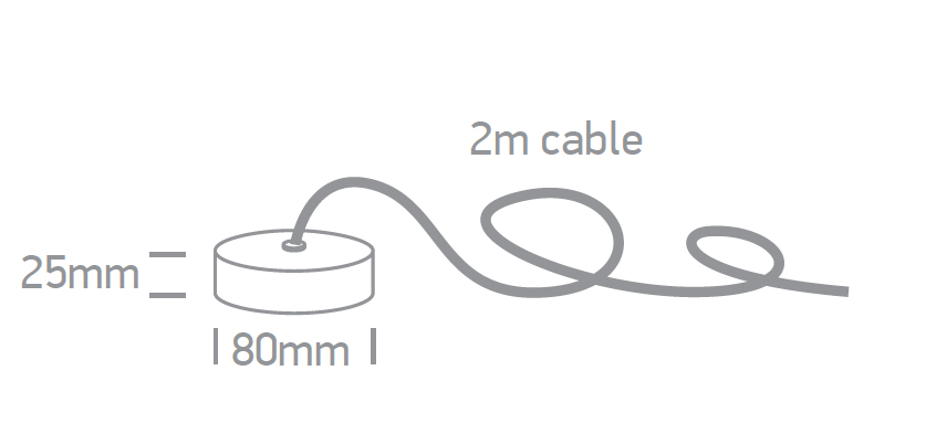 Základna pro závěsné svítidla, zakladna hliník, povrch bílá/černá/šedá, rozměry d=80mm, h=25mm, délka kabelu l=2m.