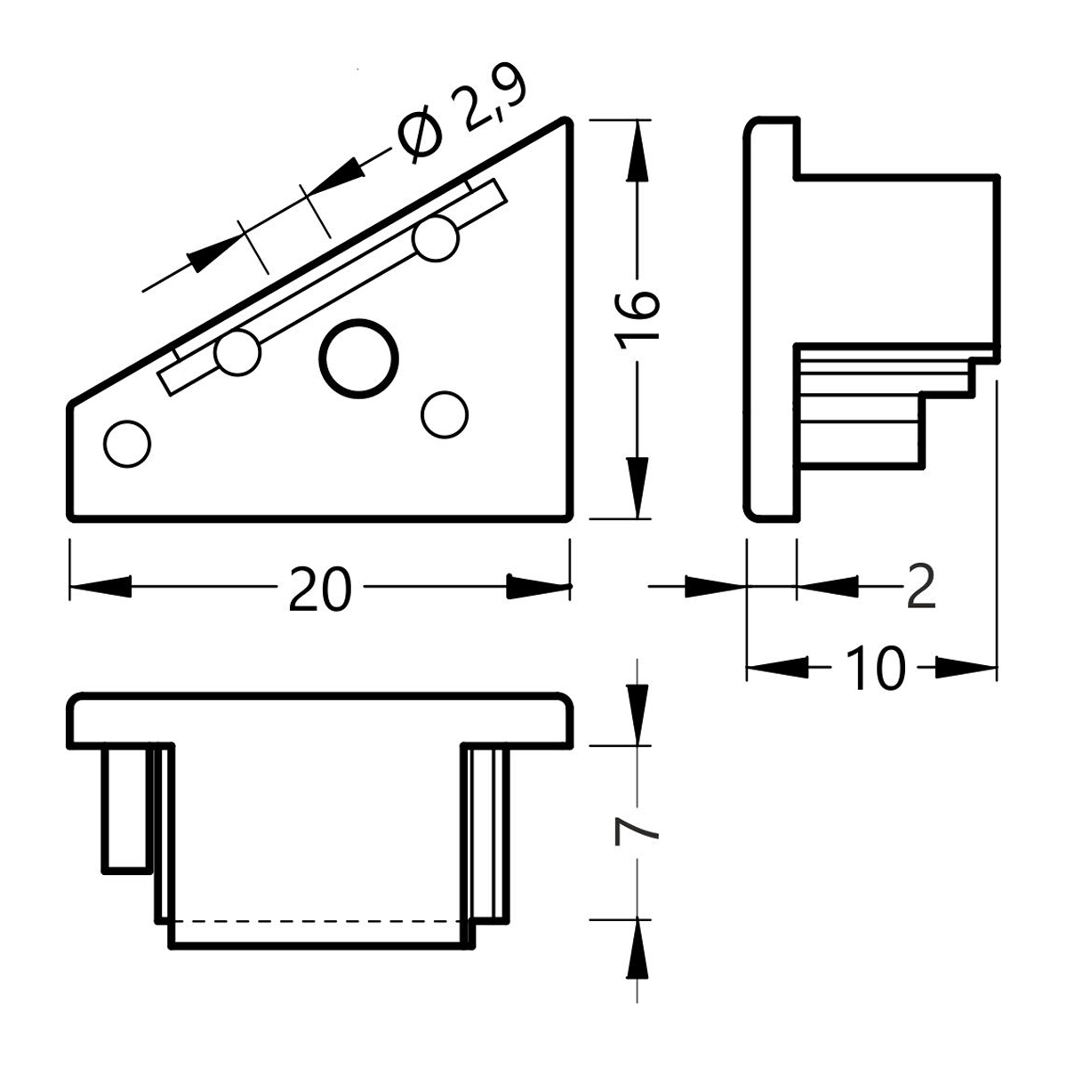 Koncovka profilu pro LED pásky s otvorem, materiál ABS, povrch bílá/černá/stříbrná/šedá, rozměry 20x10x7mm