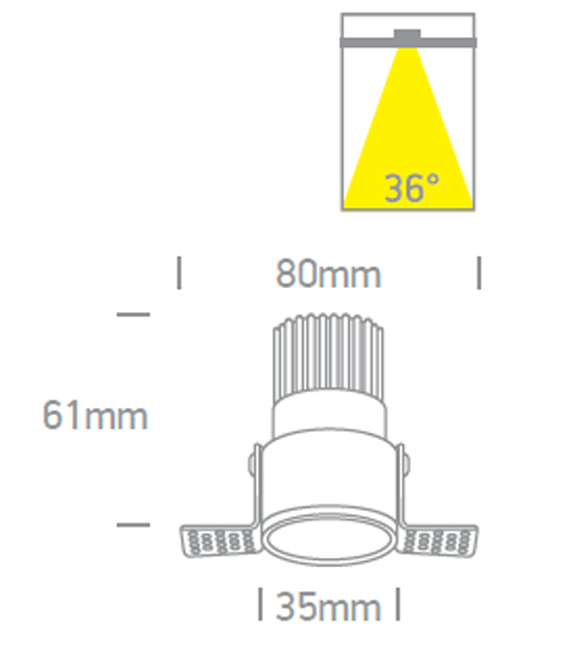 Stropní podhledové, bodové, komínkové, bezrámečkové, svítidlo, těleso kov, reflektor černá/mosaz/bílá, LED 3W, 240lm, teplá 3000K, stmív, vyzař. úhel 36°, 350mA, IP20, tř.3, rozměry d=35mm, h=61mm, driver SAMOSTATNĚ.