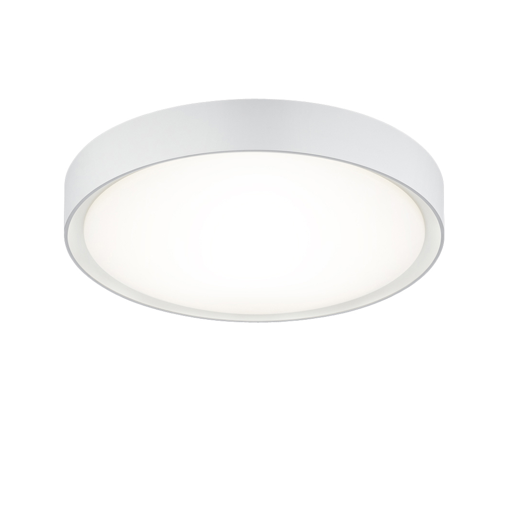 Stropní svítidlo, základna kov, povrch bílá, titan, difuzor plast opál, LED 1x18W, teplá 3000K, 1600lm, 230V, do koupelny IP44, tř.1, rozměry d=330mm, h=90mm.