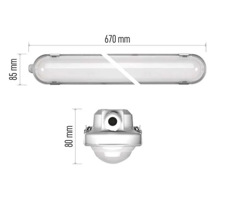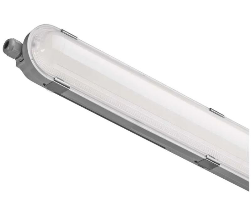 COUVIN 18W IP66 CCT - Stropní, průmyslové, prachotěsné svítidlo, těleso plast, povrch šedá, difuzor plast opál, LED 18W, 2700lm, přepín. CCT teplota neutrální 4000K-denní 6500K, Ra80, 230V, IP66, IK08, rozměry 670x80x85mm.
