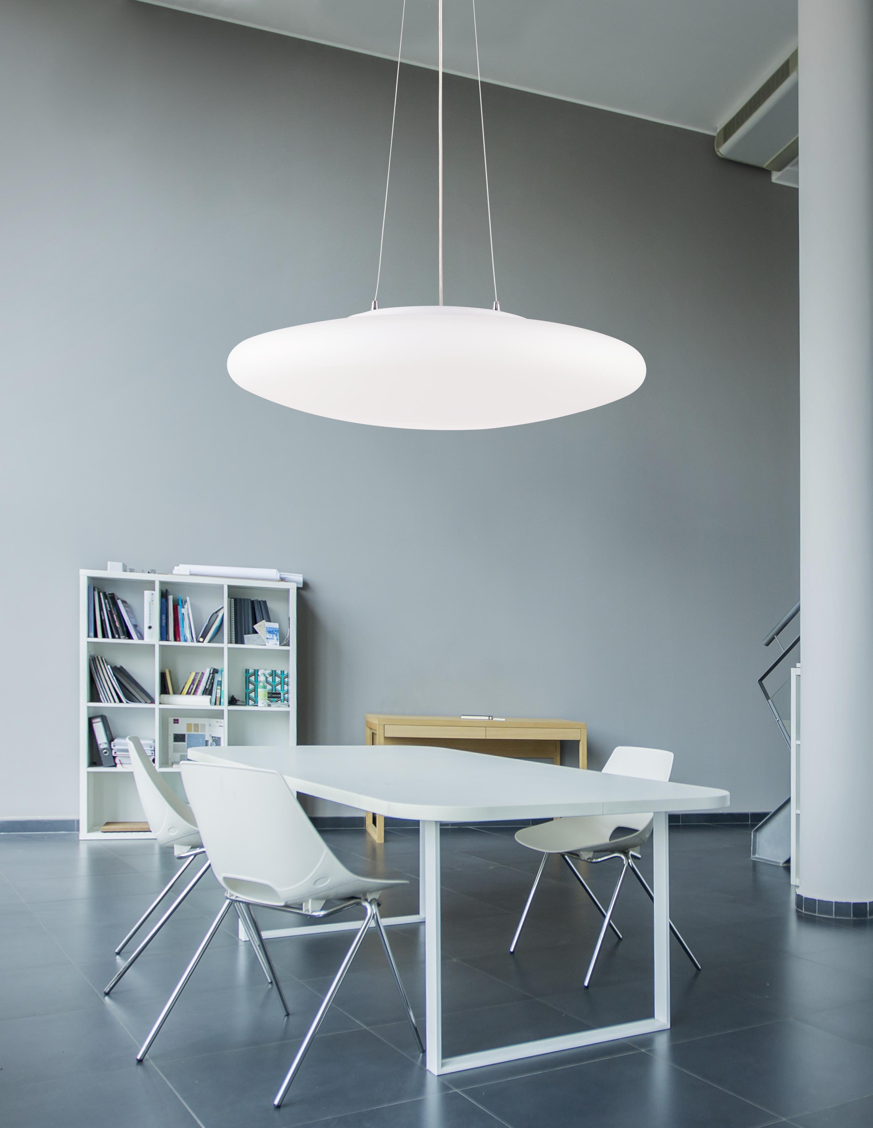 Závěsné svítidlo, základna kov, povrch chrom mat, difuzor sklo opál, pro žárovku 60W, E27, 230V, IP20, rozměry dle typu, vč.závěsného kabelu, lze zkrátit