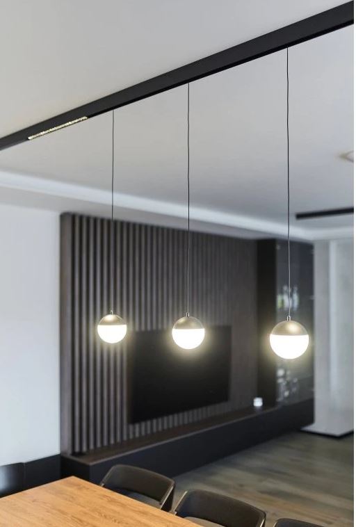 Závěsné svítidlo do mag. systému, kov, černá, dif plast opál, smart Tuya dle typu, LED 5W, teplá 3000K/400lm, neutrální 4000K/425lm, stmív. dle typu, Ra90, 48V, IP20, rozměry d=110mm, vč závěs kabelu l=1500mm, lze zkr.