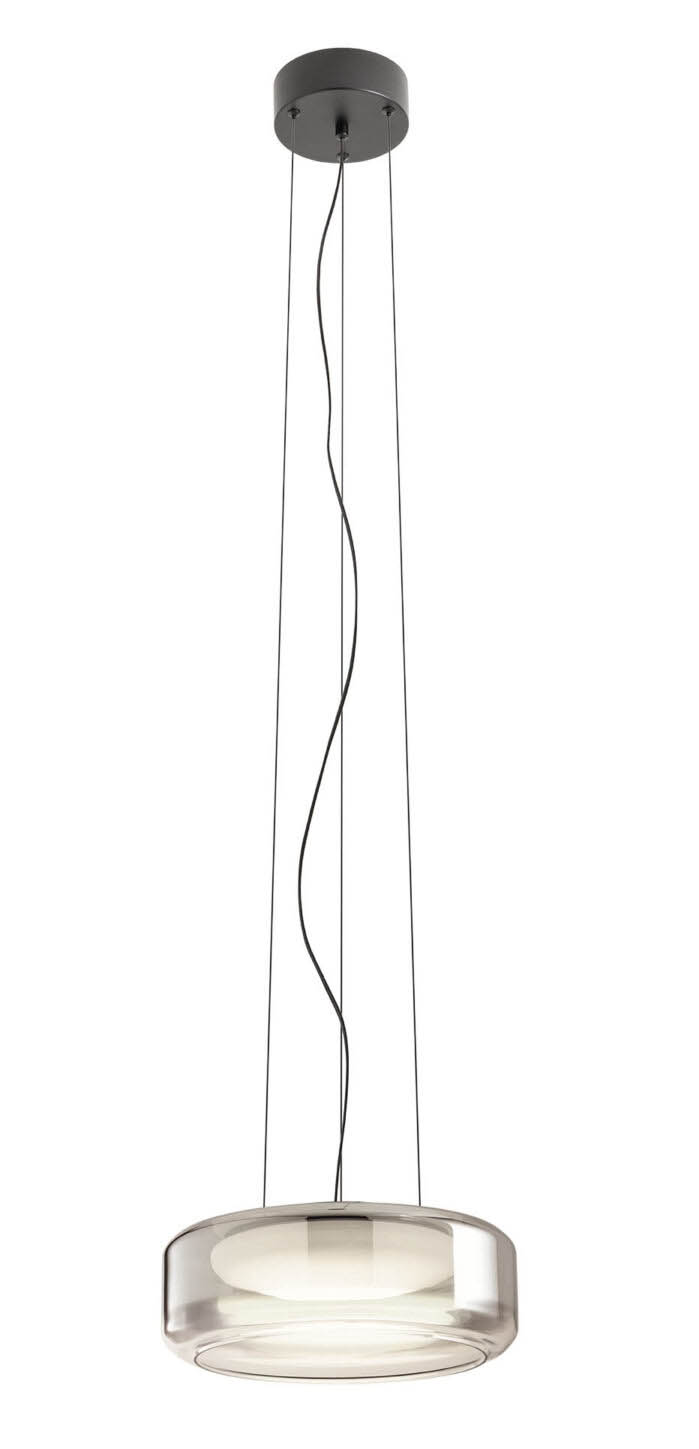 Závěsné svítidlo, základna kov, povrch černá, dif plast opál, stínítko sklo kouřové, LED 24W/1731lm, 36W/2347lm, přepín CCT teplota teplá 3000K/neutr 4000K, Ra94, 230V, IP20, tř.1, rozměry dle typu.