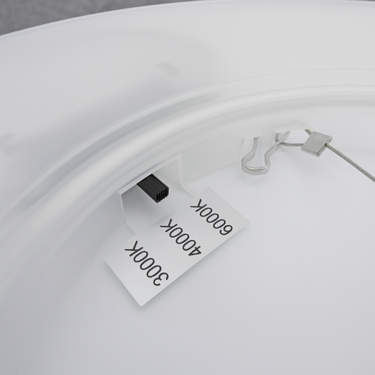 Výhodné vlastnosti CCT pomocí přepínače uvnitř svítidla, lze přepínat teplotu světtla teplá 3000K neutrální 4000K, denní 6000K. Tímto lze bez úpravy elektroinstalace přepnout teplotu světla.