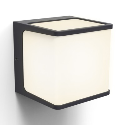 DOBI W1, LED 15W, IP54 - Nástěnné venkovní svítidlo, těleso hliník, povrch šedočerná, difuzor plast opál. LED 15W, 800lm, teplá 3000K, Ra80, 230V, IP54, rozměry 100x110x110mm