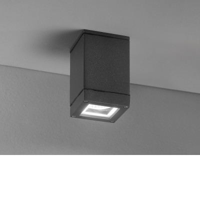 Stropní přisazené bodové venkovní svítidlo, těleso kov, povrch grafitově černá/bílá mat, kryt sklo, pro žárovku 1x35W, GU10, 230V, IP44, rozměry 90x90x100mm.
