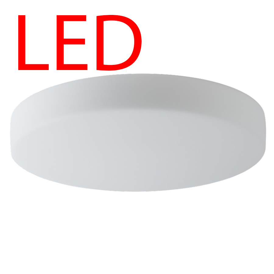 Stropní, přisazené svítidlo, základna kov, povrch bílá, difuzor sklo triplex opál, pro žárovku nebo LED, teplá 3000K/neutrální 4000K, dle typu stmív DALI, 230V, do koupelny IP43, tř.1, d=420mm, h=115mm
