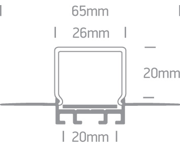EMILY profil 65x20 - Vestavný, zápustný bezrámečkový profil pro LED pásky do sádrokartonu, materiál hliník, povrch surový, difuzor plast opál, max šířka LED pásků w=20mm, rozměry 65x20mm, délka l=2m.