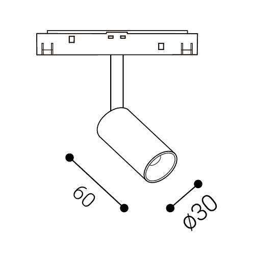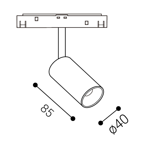 Bodové svítidlo do magnetického systému, nastav. směr svícení, těleso kov, povrch černá/bílá, LED 3W/240lm, 6W/480lm, 10W/800lm, teplá 3000K/neutrální 4000K, stmív. DALI dle typu, vyzař. úhel 36°, 48V, IP20, rozměry dle typu.