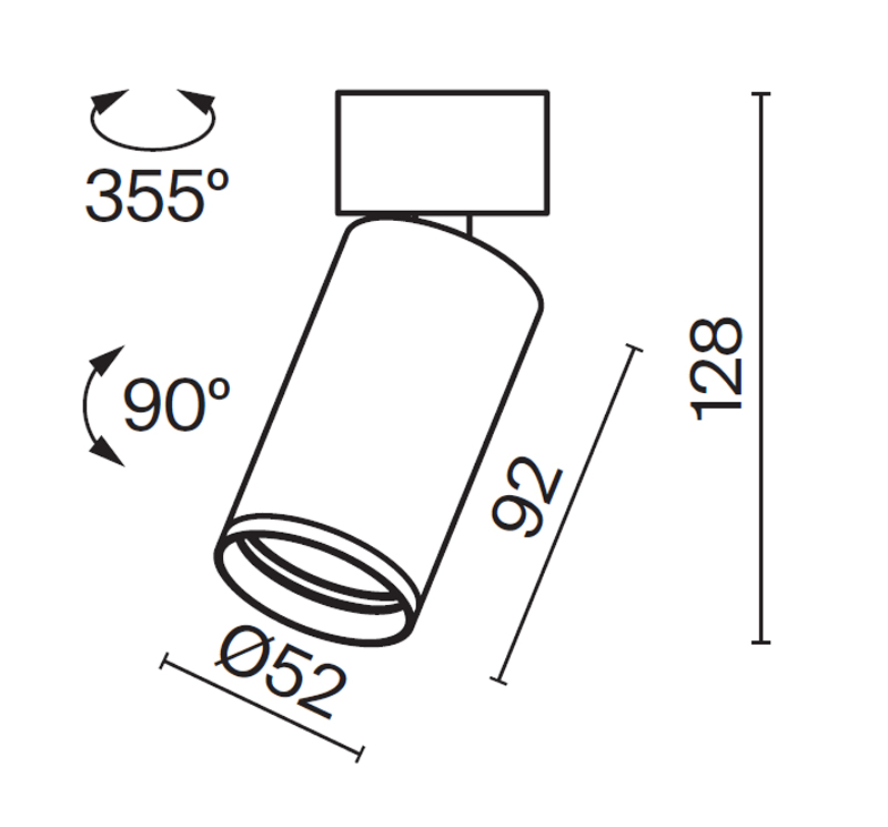 Stropní, přisazené, bodové svítidlo, nastav. směr svícení, těleso kov, povrch černá/bílá/zlatá mat/stříbrná, pro žárovku 1x10W, GU10, 230V, IP20, rozměry d=52mm, l=92mm, h=128mm.