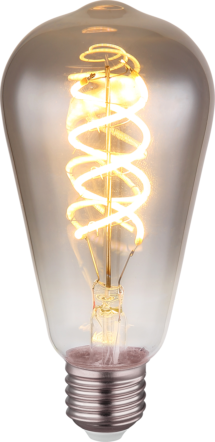 VENT LED 6,5W, E27 - Světelný zdroj, retro žárovka, sklo kouřové, LED 6,5W, E27, 220lm, teplá 2000K, stmívatelná, Ra80, 230V, životnost 15.000 hod, IP20, d=64mm, l=141mm.