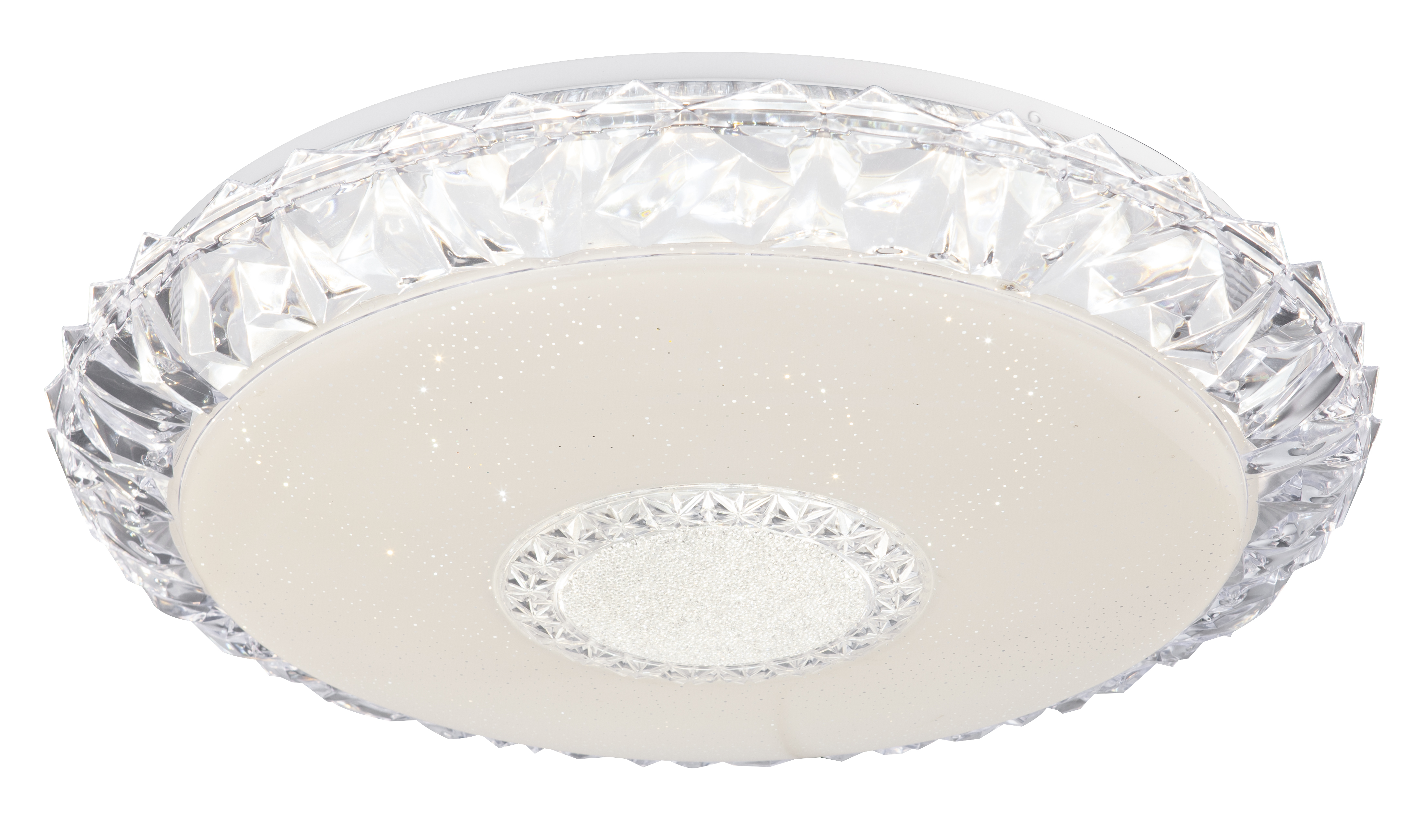 TUBER 40W, CCT, Tuya - Stropní svítidlo, těleso kov povrch bílá, difuzor plast opál, čirý a s efektem křišťálů, LED 40W, 4250lm, Tuya CCT nastav. teplota teplá 3000K - denní 6000K, stmív, rozměry d=500mm, h=100mm.