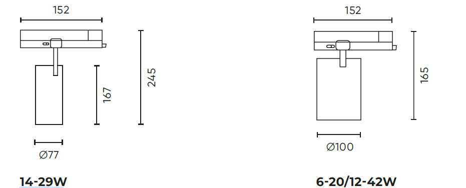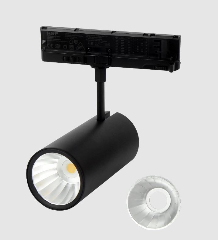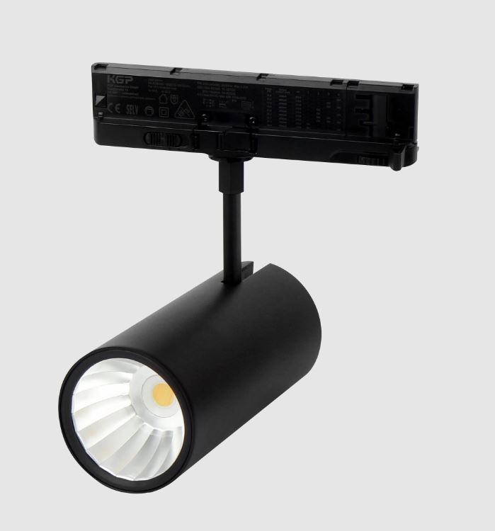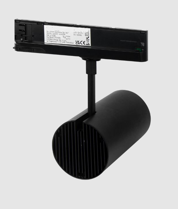 Bodové svítidlo, do 3-fázové lišty, nastav. směr svícení, hliník, bílá/černá, přepínatelný příkon LED 14-29W/6-20W/12-42W, přepín CCT teplá 3000K/neutr 4000K/denní 6000K, vyzař. úhel 36/60°, 230V, IP20, tř.2, rozměry dle typu.