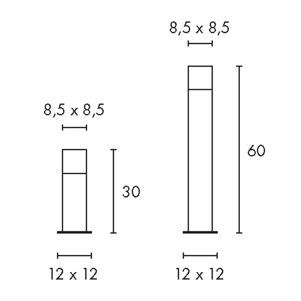 | Rozměry | 85x85mm, h 300mm, nebo 600mm. Uváděné rozměry jsou pouze informativní a výrobce je může změnit. |