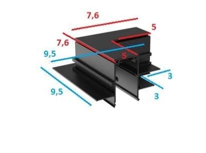 HOROS corner BI H 95x95mm - Rohová L spojka 90°, horizontální odbočení, vestavného magnetického systému, materiál hliník, povrch černá, 48V, rozměry 95x95mm.
