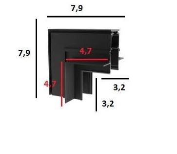 HOROS corner BI V 79x79 - Rohová L spojka 90°, vertikální odbočení, vestavného magnetického systému, materiál hliník, povrch černá, 48V, rozměry 79x79mm
