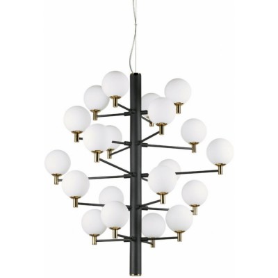 GERBEST HL20 - Závěsné svítidlo, těleso kov, povrch černá mat s mosaznými detaily, difuzor sklo opál, pro žárovku 20x40W, G9, 230V, IP20, tř.1, rozměry d=860mm, h=890mm, vč závěs kabelu l=2025mm, lze zkrátit.