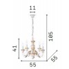 FALKENBERG PL5 - Závěsné svítidlo, lustr s rameny, těleso kov a plast, povrch bílá se zlatými detaily, pro žárovku 5x40W, E14, 230V, IP20, rozměry d=550mm, h=410mm, vč. závěs řetězu l=1050mm, lze zkrátit.