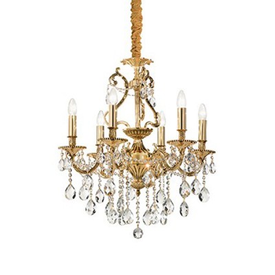 POPLAR 6x40W E14 - Závěsné svítidlo, lustr 6 ramen, těleso kov, povrch antická zlatá, imitace opotřebení, křišťálové ověsy, pro žárovku 6x40W, E14, 230V, IP20, tř.1, d=620mm, vč závěsu l=1180mm, lze zkrátit