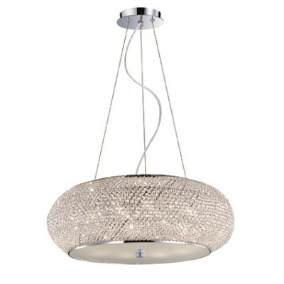 ESMER závěsné stropní svítidlo 40W E14 - Závěsné stropní svítidlo, základna kov, povrch chrom, difuzor z křišťál. perel uzavřen písk. sklem, pro žárovku 10x40W, E14, 230V, tř.1, IP20, rozměry d=550mm, vč lank. záv l=280/1480mm, lze