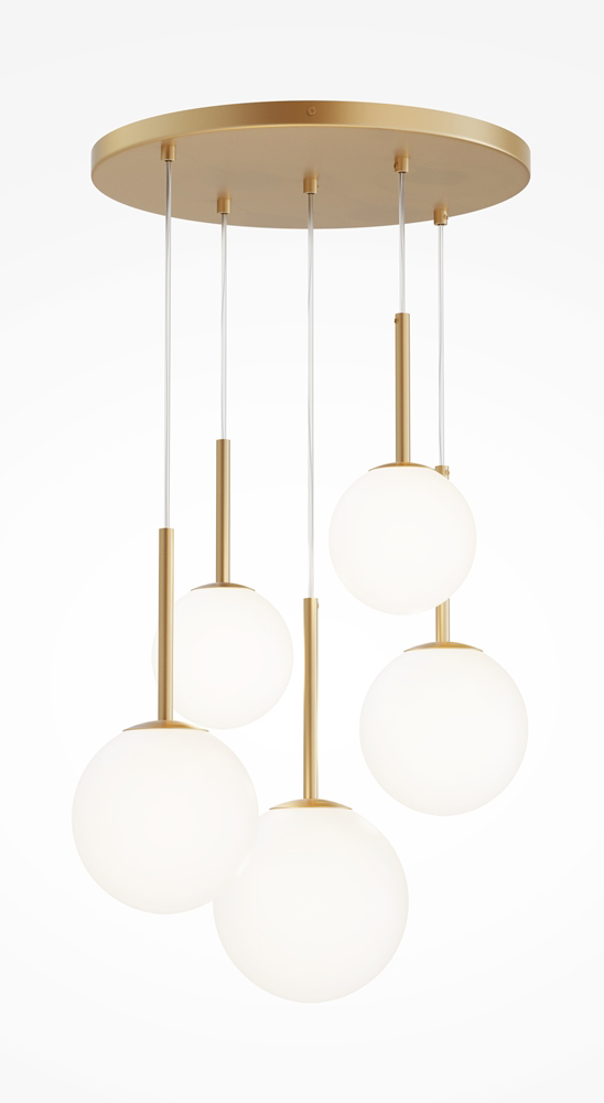 Závěsné svítidlo, základna kov, povrch černá/zlatá/bílá, difuzor sklo opál, pro žárovku 5x40W, E14, 230V, IP20, tř.1, rozměry d=580mm, vč závěs kabelu l=1200mm, lze zkrátit.