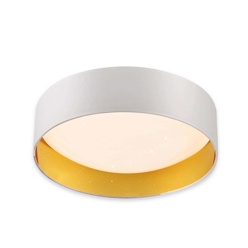 Stropní svítidlo, těleso kov, povrch bílá/černá, difuzor plast opál se třpyt. efektem, LED 24W, CCT nastav teplota teplá 3000K-denní 6500K, 2400lm, dálk ovl. stmív., 230V, IP20, rozměry d=415mm, h=130mm.