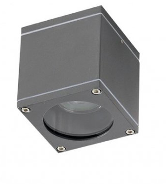 Stropní, venkovní svítidlo, těleso kov, povrch bílá/černá antracit, kryt sklo čiré, pro žárovku 1x35W, GU10, 230V, IP54, rozměry: 90x90mm, h=108mm.
