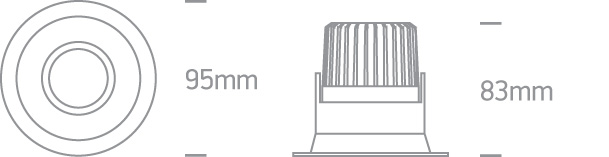 Stropní podhledové, bodové, svítidlo, nast. směr svícení, těleso kov, povrch bílá/černá, LED 7W, 560lm, přepín CCT teplota teplá 3000K/3500K/neutr 4000K, 230V, IP20, tř.2, d=95mm, h=83mm.