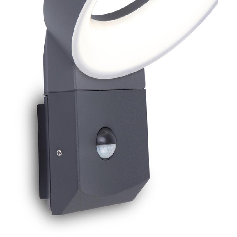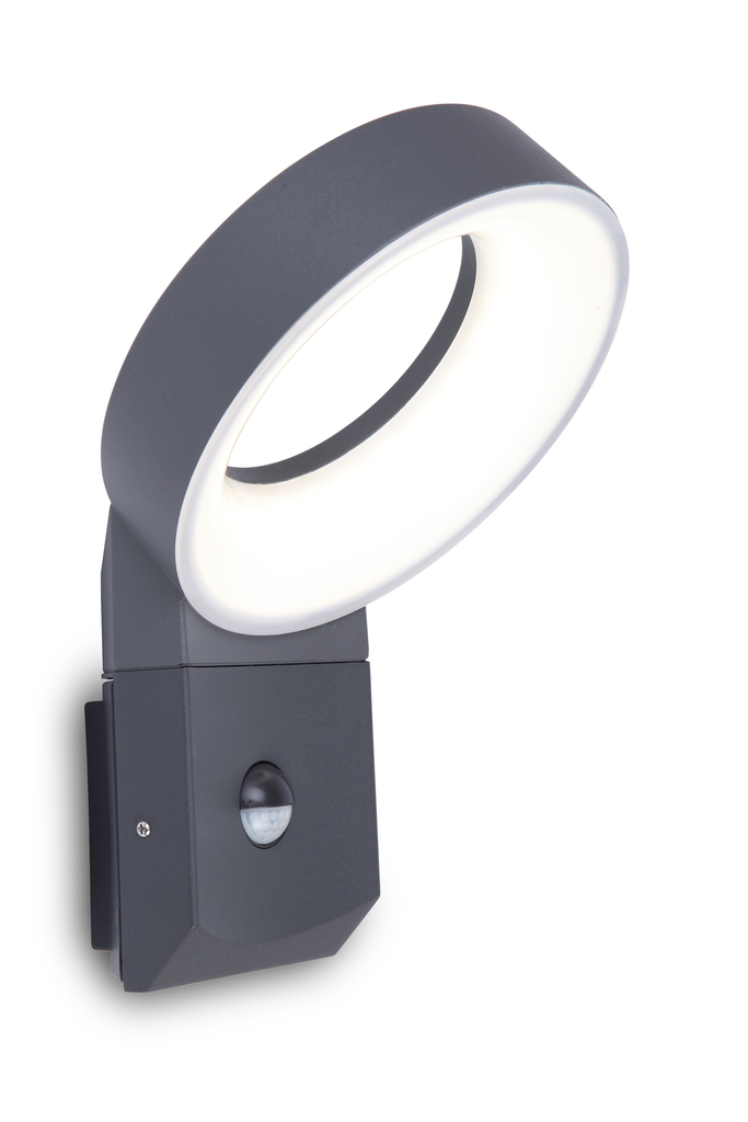 KROUL PIR 14W - VÝPRODEJ Nástěnné venkovní svítidlo, senzor pohybu PIR, záběr čidla 100°, dosah 10m, čas 1min-8min, hliník, šedočerná, dif.r plast opál, LED 14W, 800lm, teplá 3000K, Ra80, 230V, IP54, tř.1, 266x1