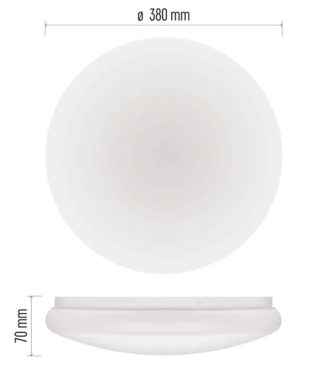 SKLADEM OLAVA LED 18W, IP44 Stropní přisazené svítidlo, HF senzor pohybu dle typu, těleso plast, povrch bílá, difuzor plast opál, LED 18W, 24W, přepínatelná teplota CCT teplá 3000K, neutrální 4000K, denní 6000K, 230V, IP44, rozměry dle typu.