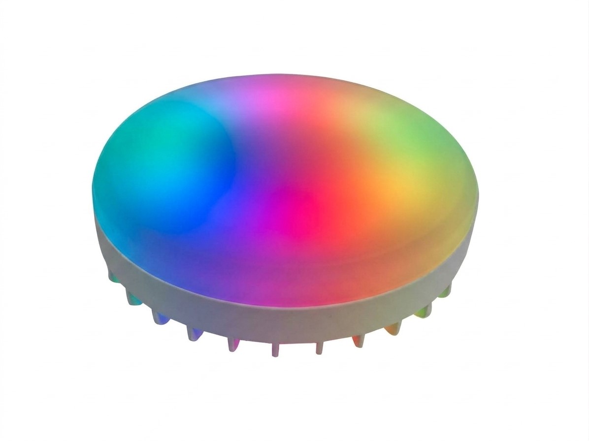 Chytrá LED žárovka 8W/640lm, 10W/800lm, 14W/1120lm, GX53, vyzařovací úhel 120°, pomocí aplikace v telefonu TUYA WiFi nebo dálk. ovladačem (beacon), nast teplota CCT 2700K-6500K, stmívatelná, RGB, Ra80, 230V, d=74mm, h=28mm.