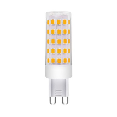 LED žárovka, těleso plast bílá, krycí plast transparentní, LED 4,5W/400lm, nebo 6W/600lm, teplá 3000K, Ra80, G9, 230V, rozměry dle typu