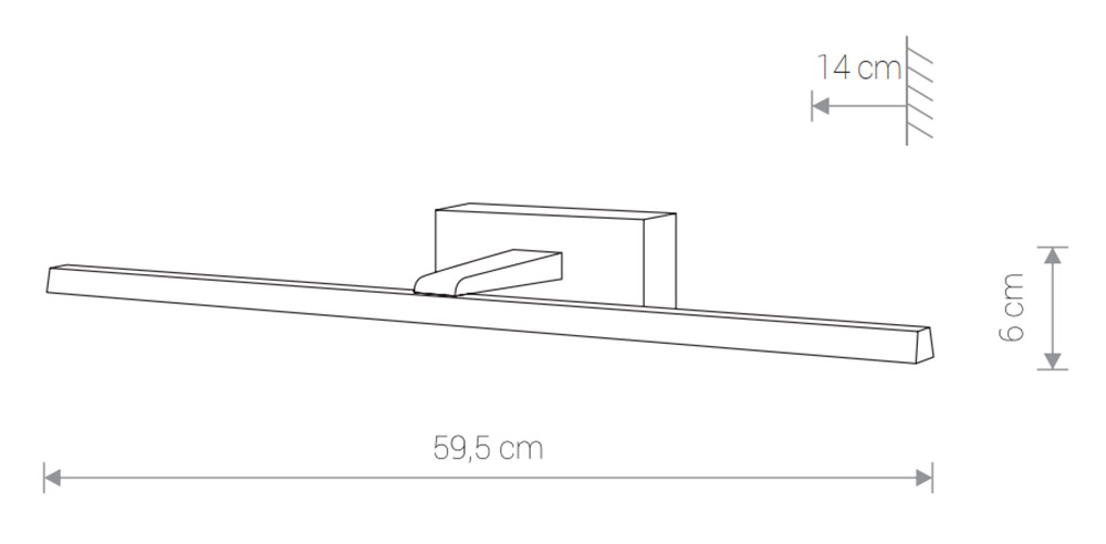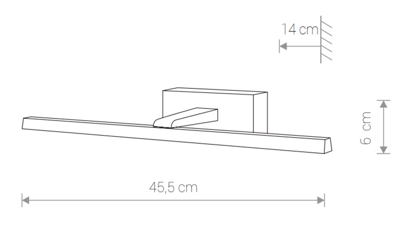 Nástěnné svítidlo k zrcadlu, těleso hliník, povrch chrom, nebo bílá, nebo černá, difuzor plast opál, LED 8W/447lm, nebo 12W/795lm, teplá 3000K, 230V, zvýšené krytí IP44, tř.1, rozměry 140x60mm, délka dle typu