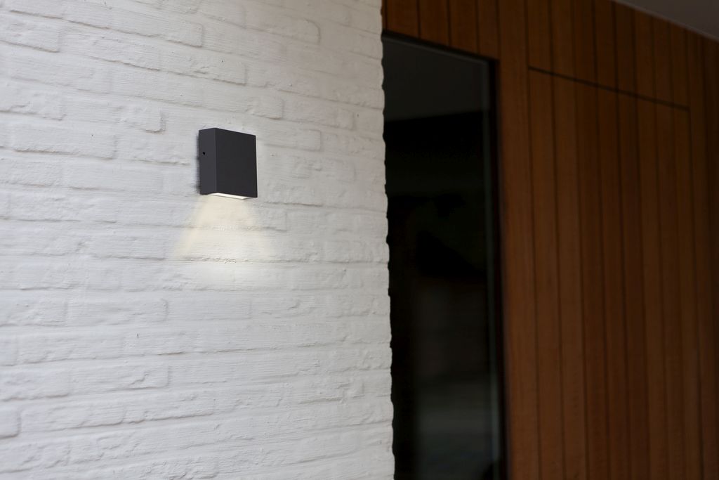 Nástěnné venkovní svítidlo, těleso hliník nebo nerez, povrch šedočerná, černá nebo stříbrná nerez, difuzor plast opál, LED 9,2W, 800lm, teplá 3000K nebo neutrální 4000K, Ra80, 230V, IP54, tř.1, rozměry 110x110x38mm, svítí dolů