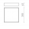Stropní přisazené svítidlo, čtvercové, těleso kov, povrch chrom, difuzor plast opál, LED 12W/900lm, 24W/1700lm, teplá 3000K, Ra80, 230V, do koupelny IP44, rozměry dle typu.