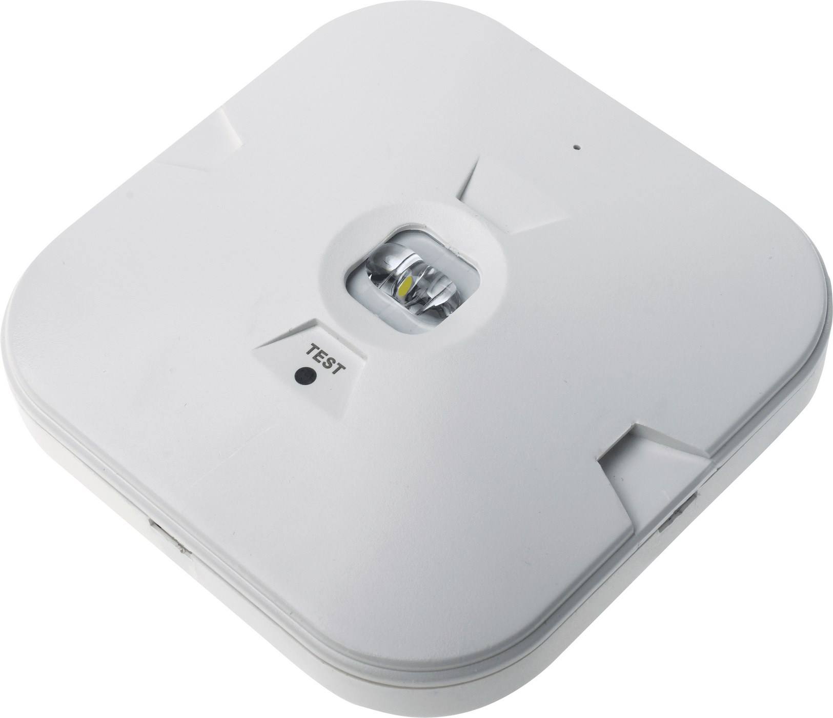 Stropní, přisazené nouzové svítidlo, plast bílá, charakteristika OPEN AREA nebo CORRIDOR, SE - pouze nouzové svícení, LED 1W, 150lm, denní 6000K, záloha 3h, 230V, zvýšené krytí IP54, tř.2, 130x130mm.