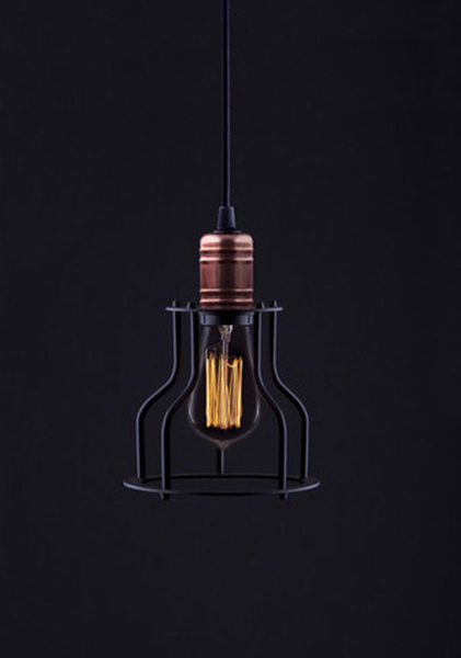 MOIRO SB - Závěsné svítidlo, těleso kov, povrch černá, stínítko kovová mřížka, povrch černá, měděné detaily, pro žárovku 1x60W, E27, 230V, IP20, tř.1, rozměry 150x210mm, vče závěsu l=1290mm, lze zkrátit