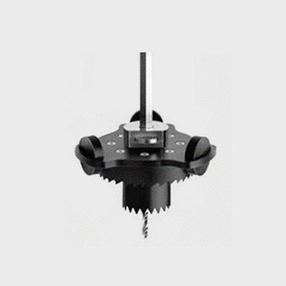 montážní sada - Montážní nástroj pro vytvoření otvoru bezrámečkových podhledových svítidel, materiál kov, povrch černá, rozměry d=85mm.